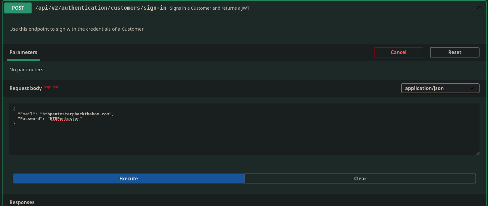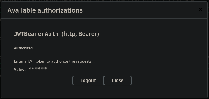 Putting that JWT into the authorize button I am now logged in using the creds given