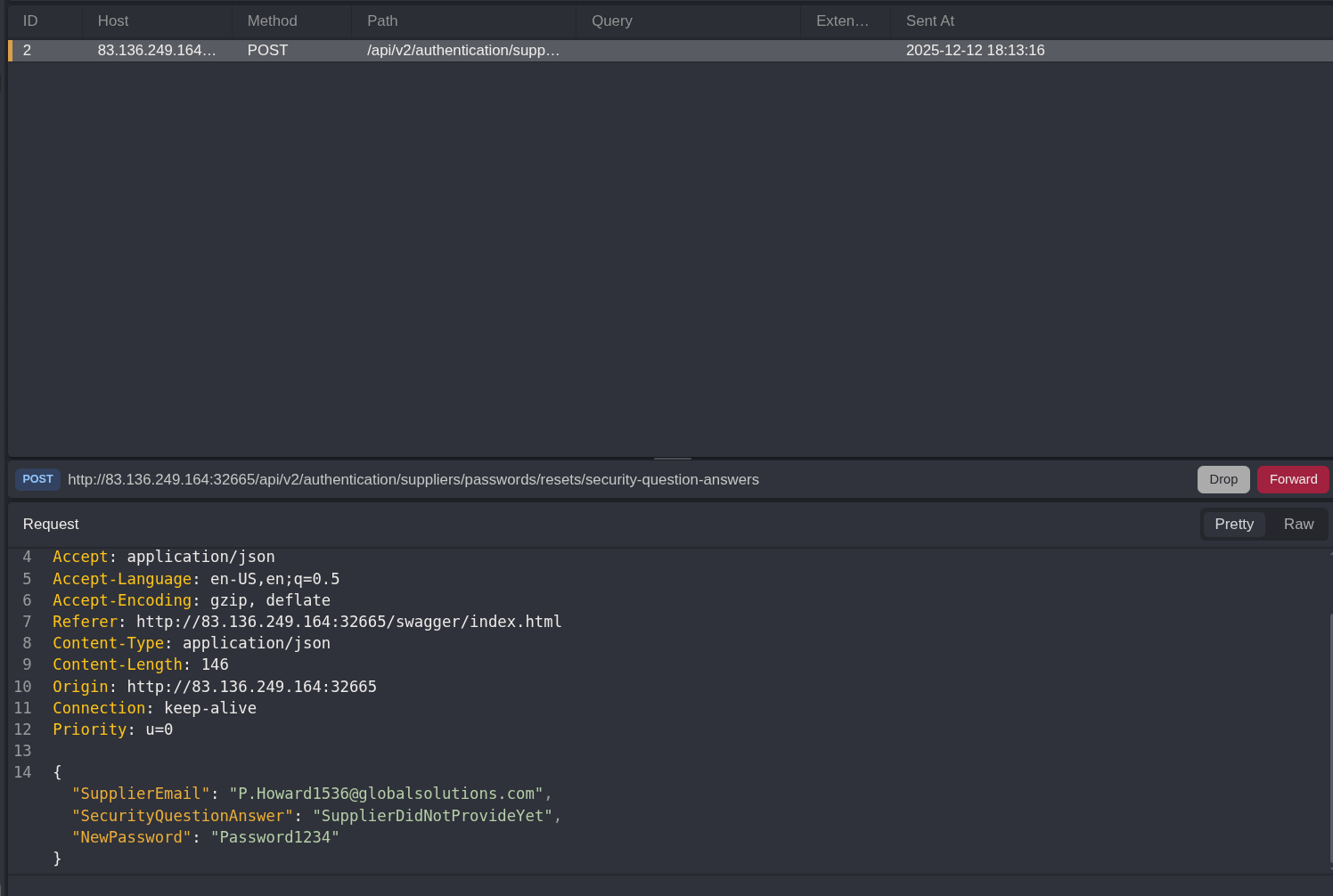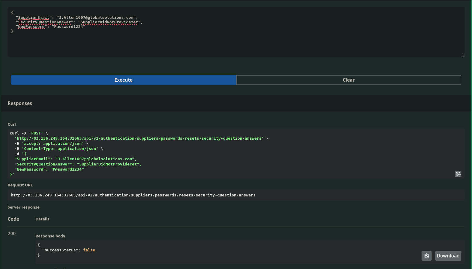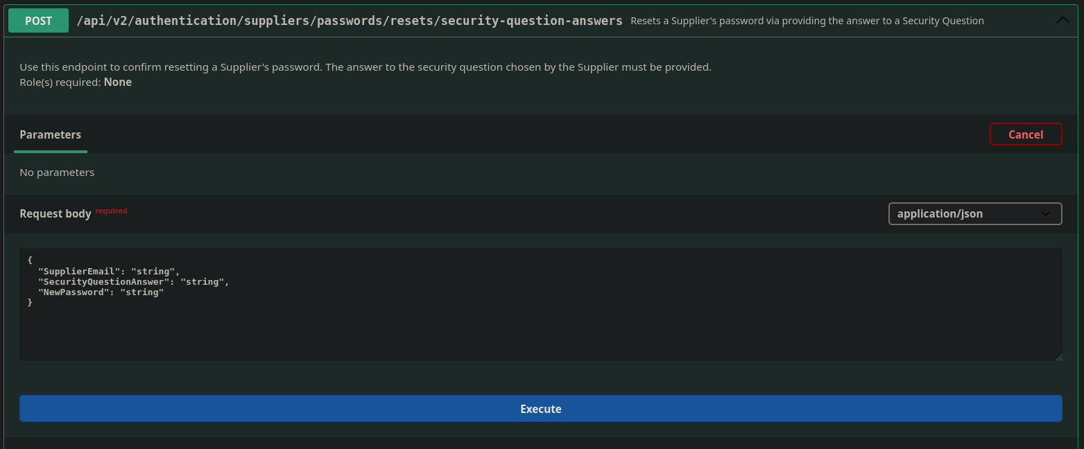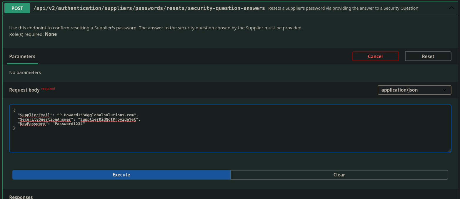 Looking at /api/v2/authentication/suppliers/passwords/resets/security-question-answers