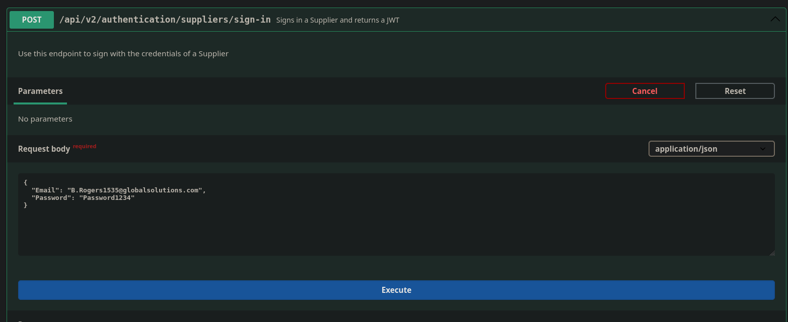 }I also tried submitting the creds to login as a supplier, but that gave the error “Invalid Credentials”