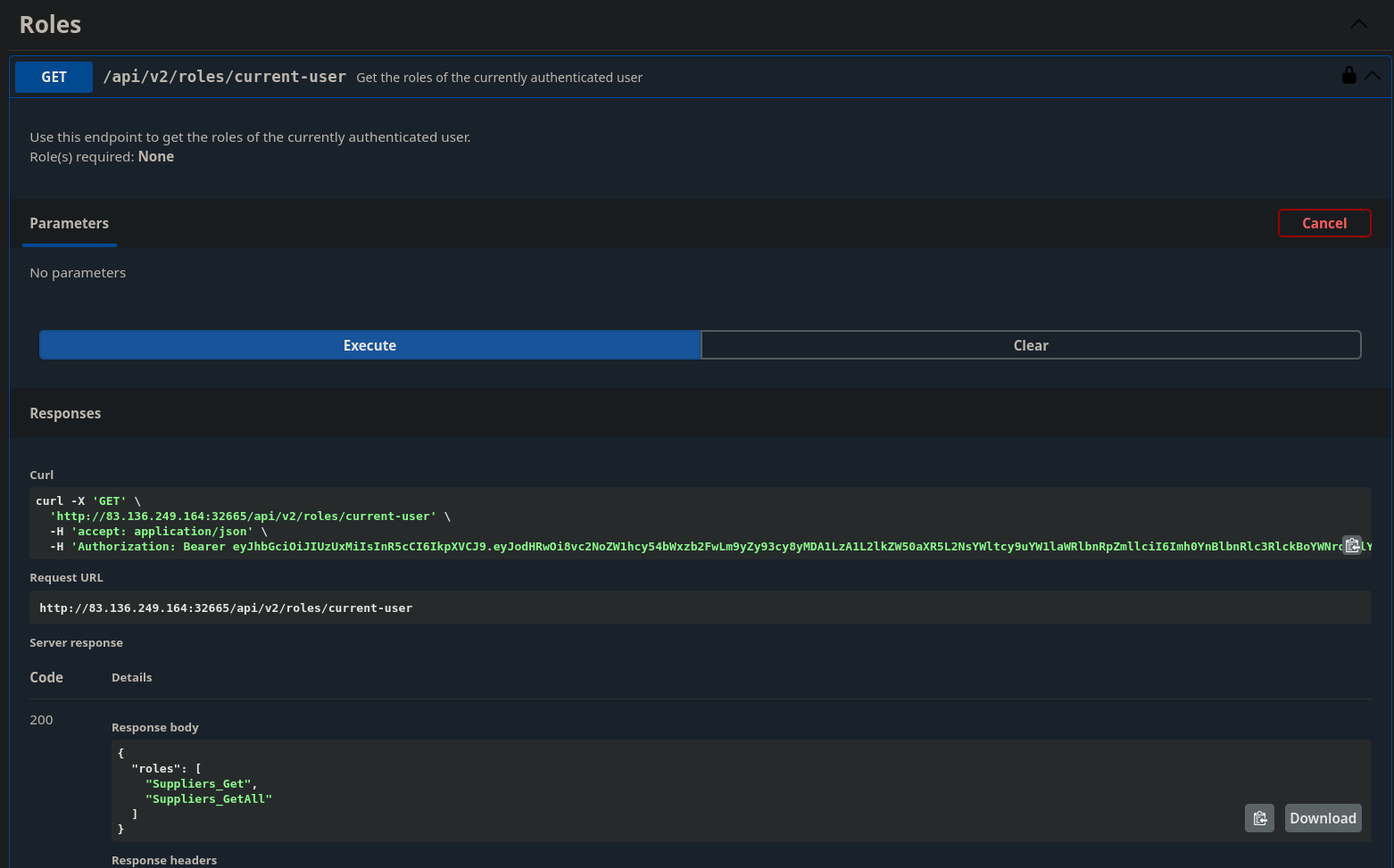 Below you can see the request I captured after clicking execute