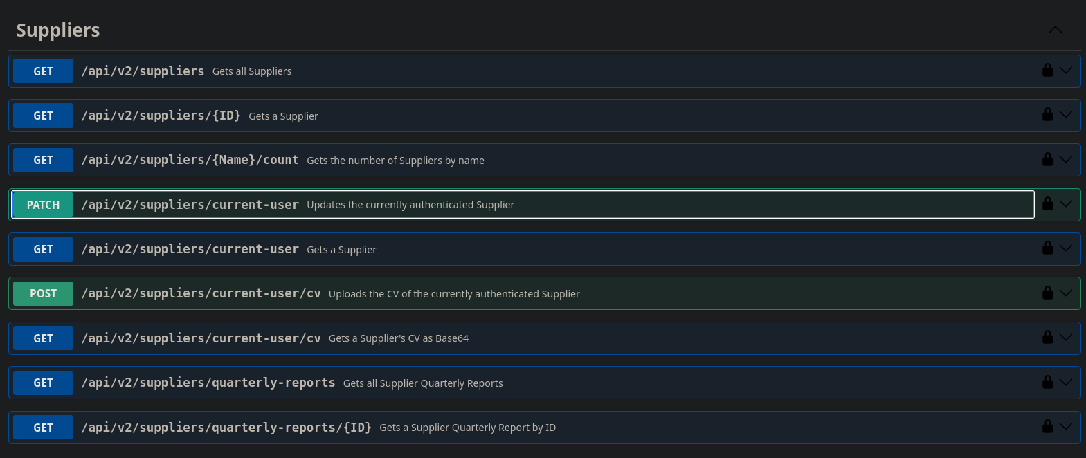Looking at the Suppliers API endpoints